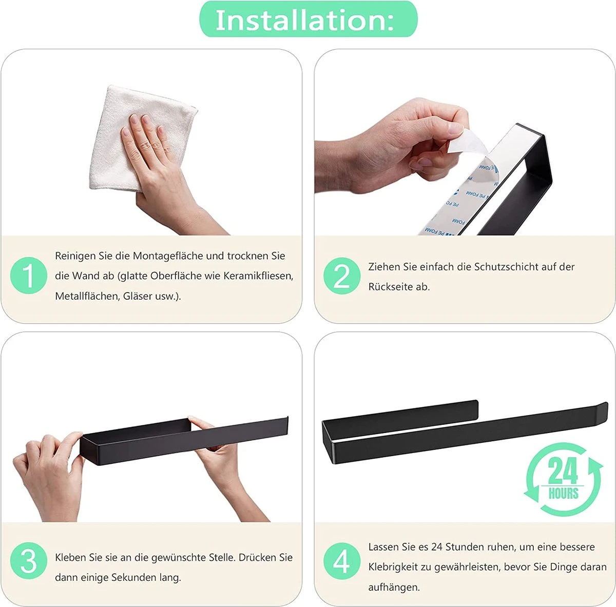 - Eenvoudige installatie: zelfklevende handdoekhouder, trek gewoon de beschermfolie op de achterkant eraf, plak de handdoekstang op de gewenste plek.