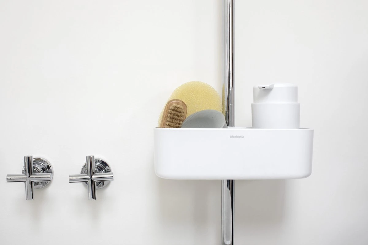 Geniet extra van je douche met deze Brabantia ReNew Doucherek – White. Ideaal voor shampoo, douchegel en scheerspullen. Bevestig de handige opberger eenvoudig aan de douchestang op de hoogte die jij wilt. Een slimme truc om je badkamer netjes en mooi te houden.