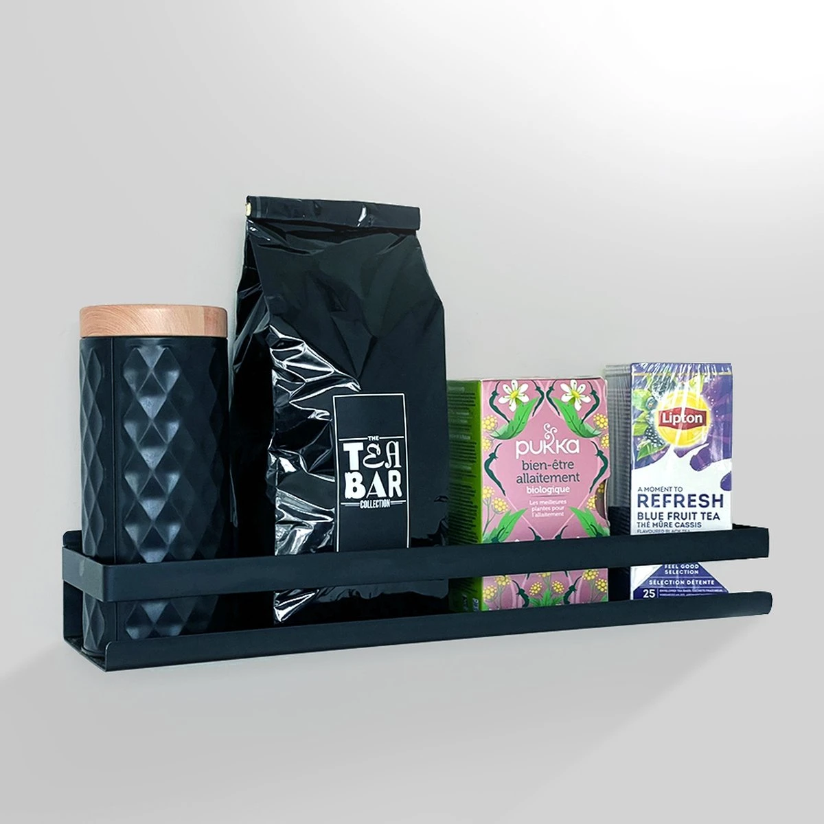 Zwarte accessoires zorgen voor een trendy look in elke kamer. Het ontwerp van deze wandrekjes is simpel, praktisch en tijdloos. De wandrek biedt een mooie ruimtebesparende oplossing. Dit wandrek is met de hand gemaakt van gehard metaal en geven hierdoor een stoere look aan uw ruimte.