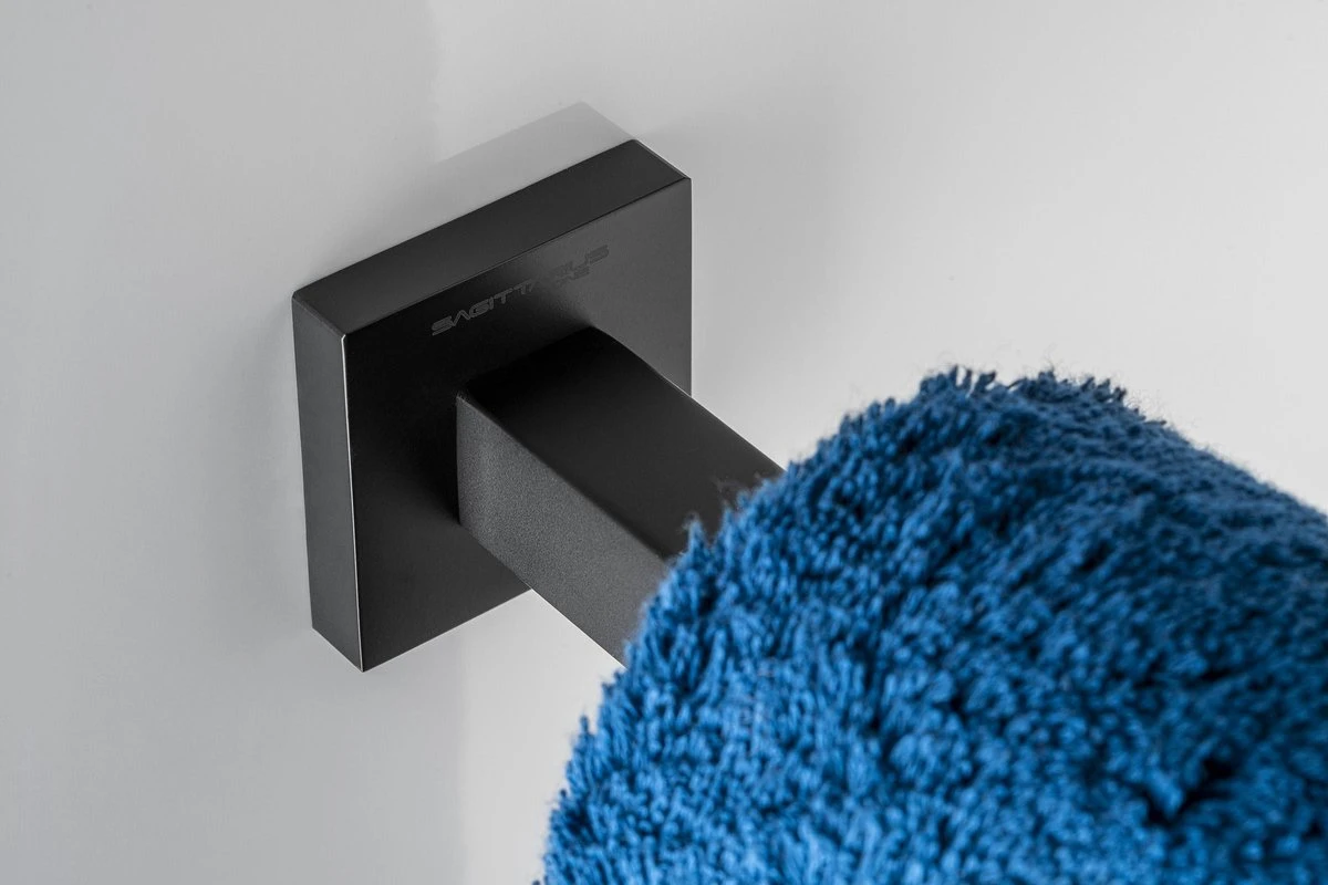 De Sagittarius One 400S1-B Zwarte Handdoekenstang is ontworpen om sterk en stevig te zijn, omdat de zwarte handdoekhouder met een slim maar elegant montagesysteem in de gewenste positie aan de muur wordt vergrendeld. De handdoekhouder voelt zwaar in je handen omdat het is ontworpen om zware handdoeken aan te kunnen. De roestvrijstalen SUS304 handdoekhouder is elektroforetisch gecoat om de prachtige matzwarte afwerking te bereiken die eeuwig zal meegaan.