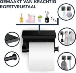 Toiletrolhouder Met Planchet – WC Rolhouder – Badkameraccessoires – Mat Zwart – 18,5×11 Cm