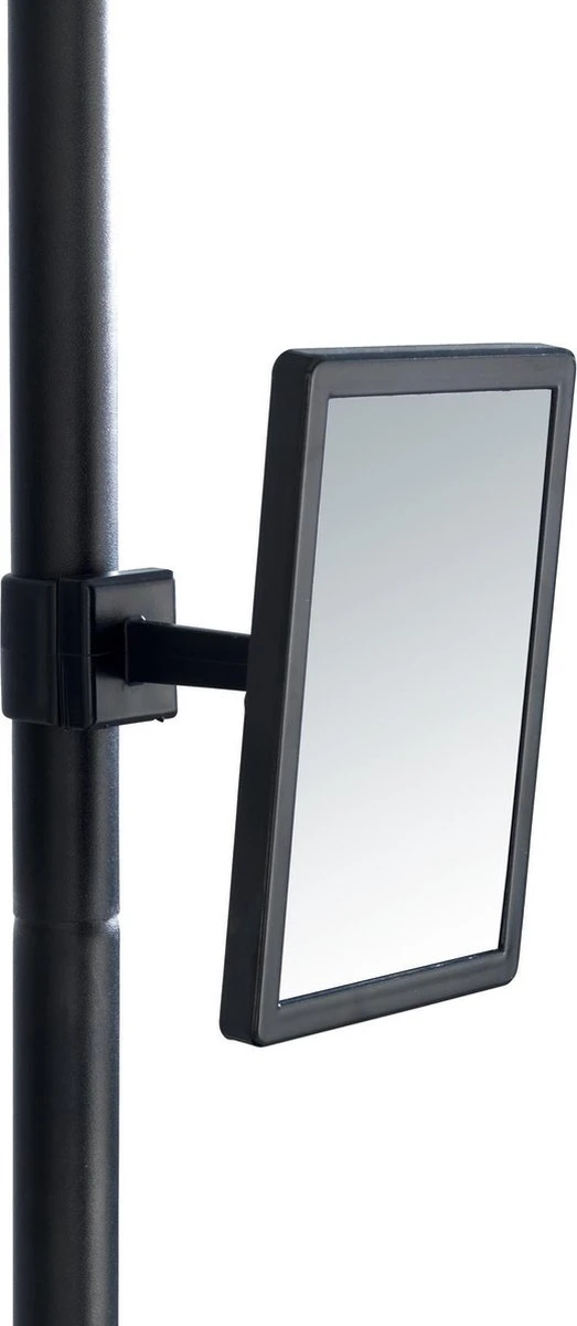 Deze spiegel kan op elke gewenste locatie op de stang bevestigd worden.